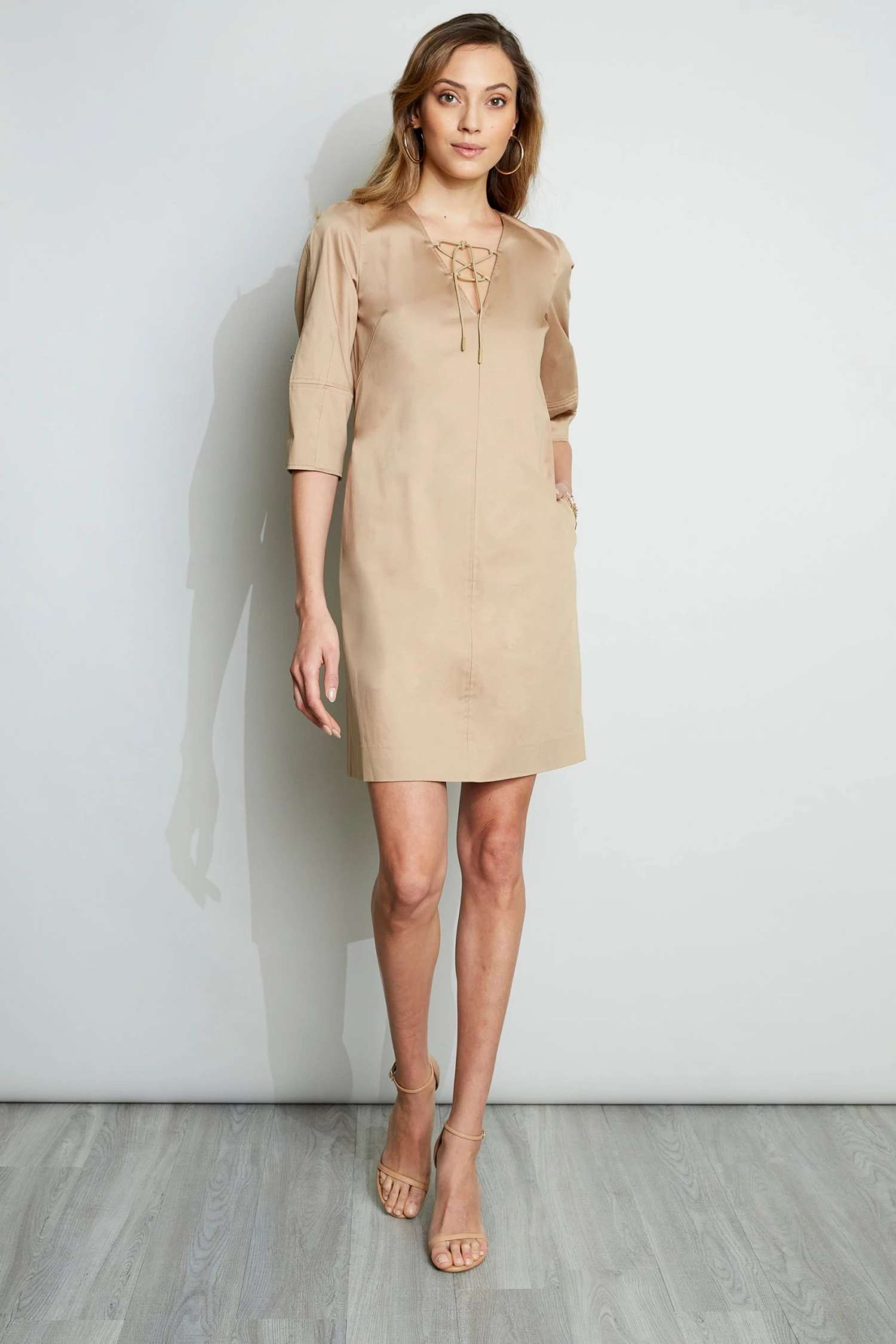 Our chic city Safari Dress has the effortless look that is perfect for work or casual summer days. Our favorite stretch Cotton Poplin sheath with its lacing neckline and sporty attitude is the definition of “one and done”.