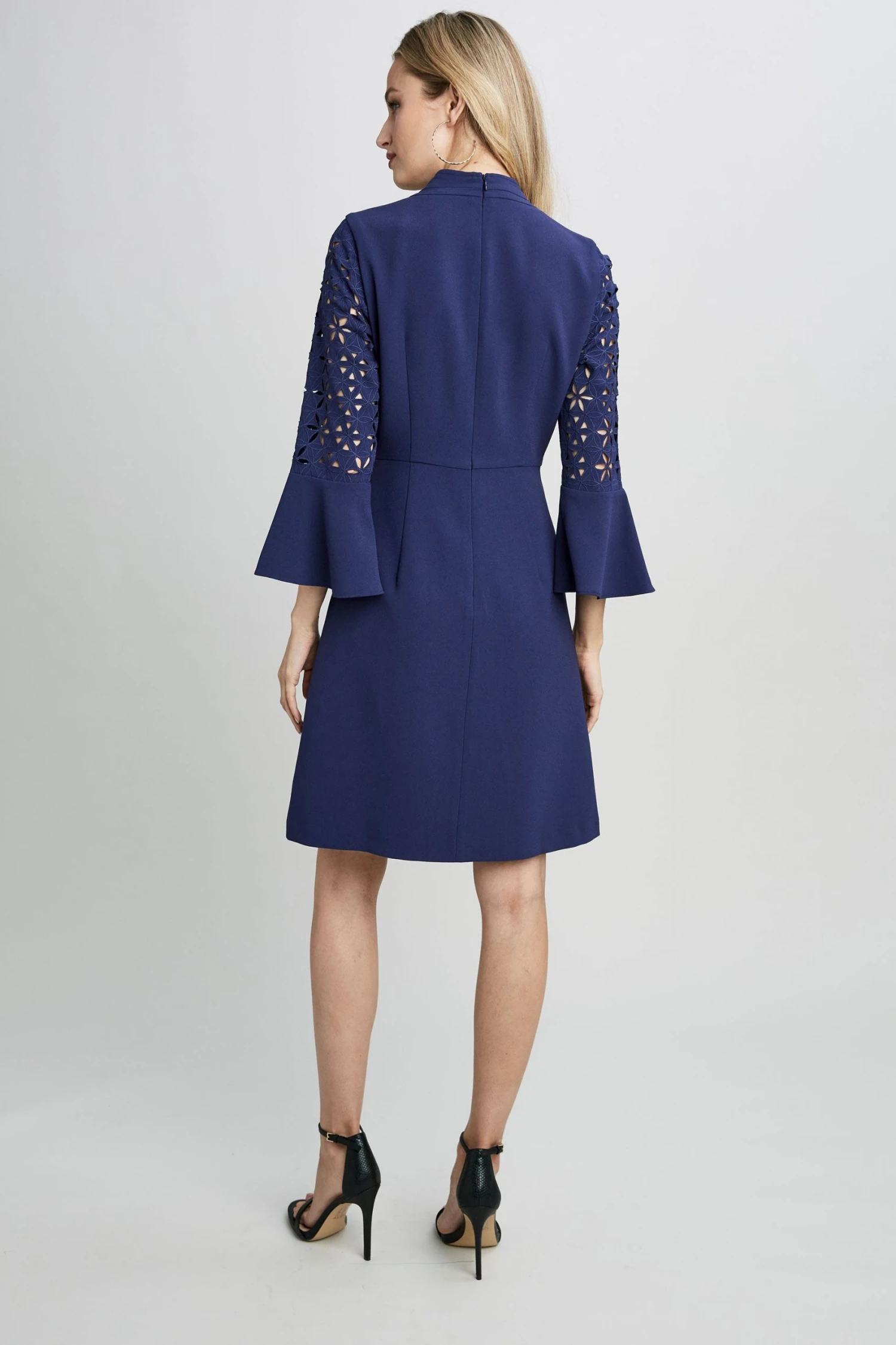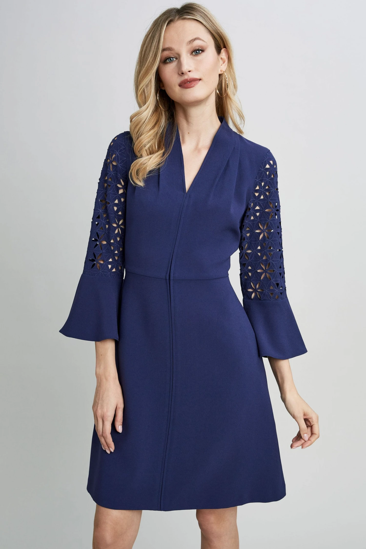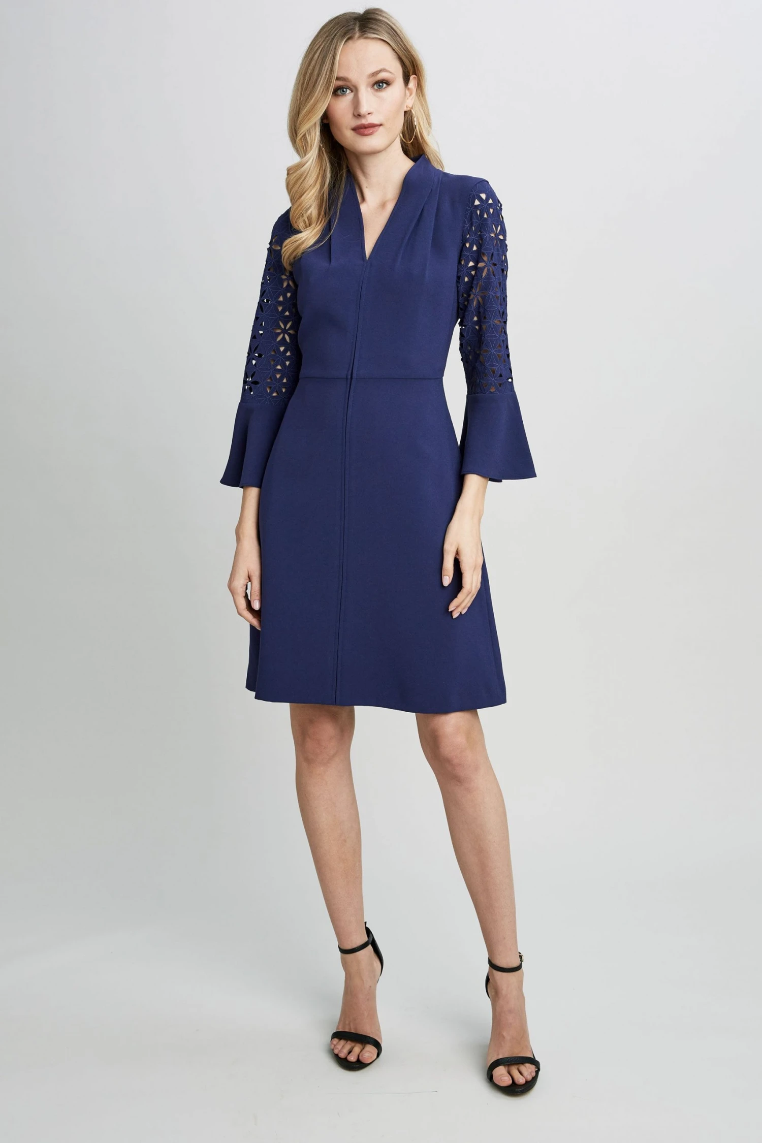 - Fit & Flare Fluid Crepe Dress with cut out embroidered Sleeves