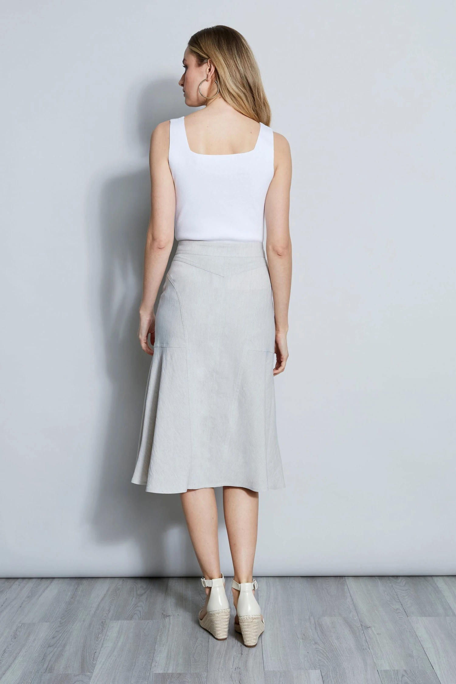 - Linen Fit & Flare Button Skirt