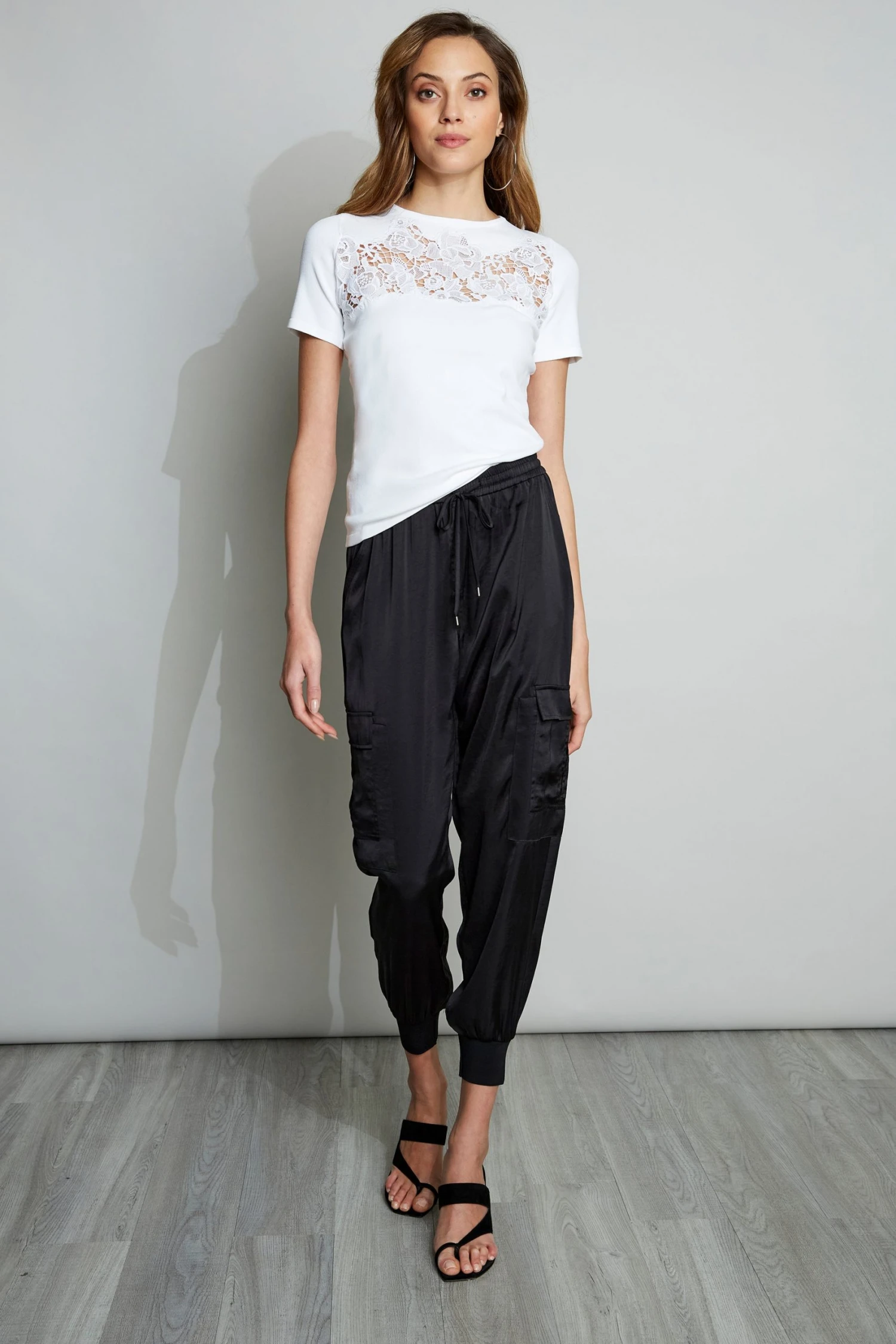 Romantic Lace applique adds a feminine design twist to this classic Short Sleeve Sweater in a Luxe Viscose Blend. Perfect for wearing on its own or layered under a jacket, this sweater looks as good dressed down with denim or up.