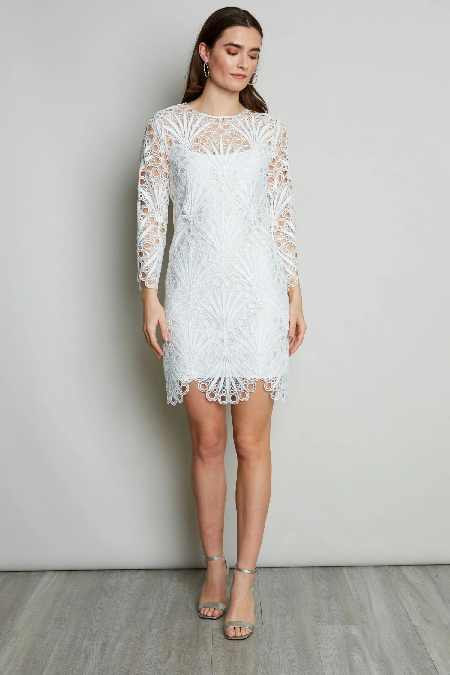 - ¾ Sleeve Scallop Lace Cocktail Shift Dress