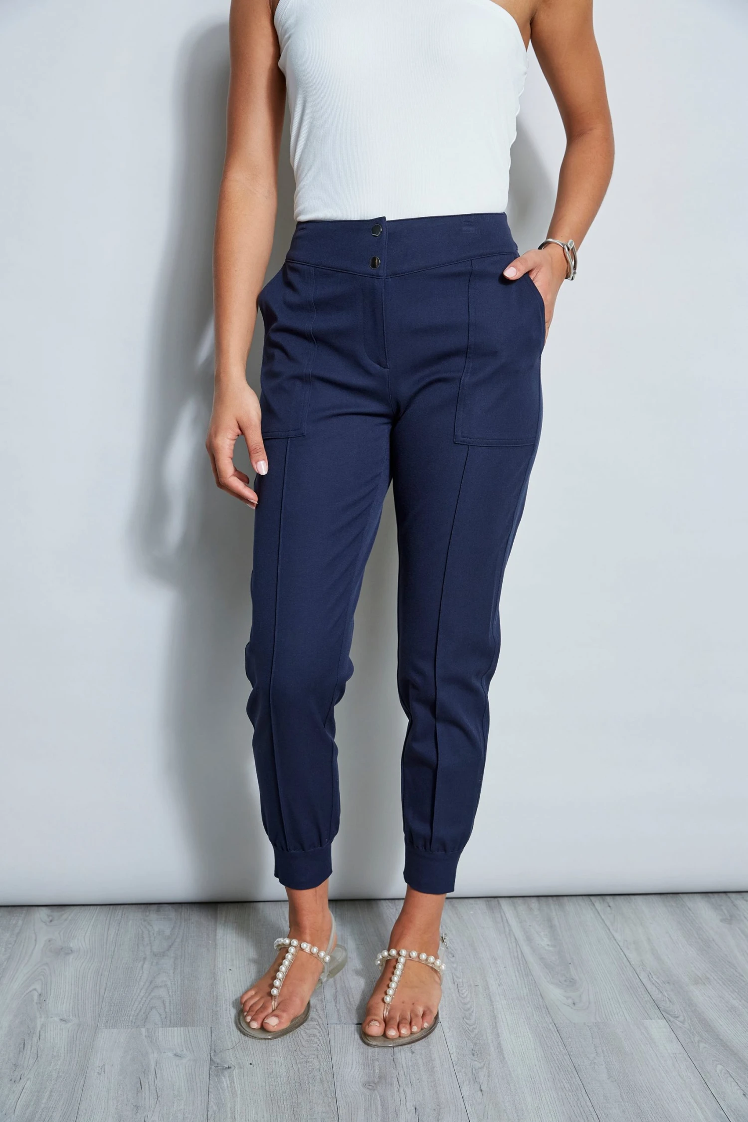 Our Stretch-Cotton blend pant is Elie’s take on Spring’s must have utilitarian trend. Sporty & comfortable, it’s detailed with cargo pockets, an elastic back waist and cuffed slim leg. Take on workdays or weekends in style!