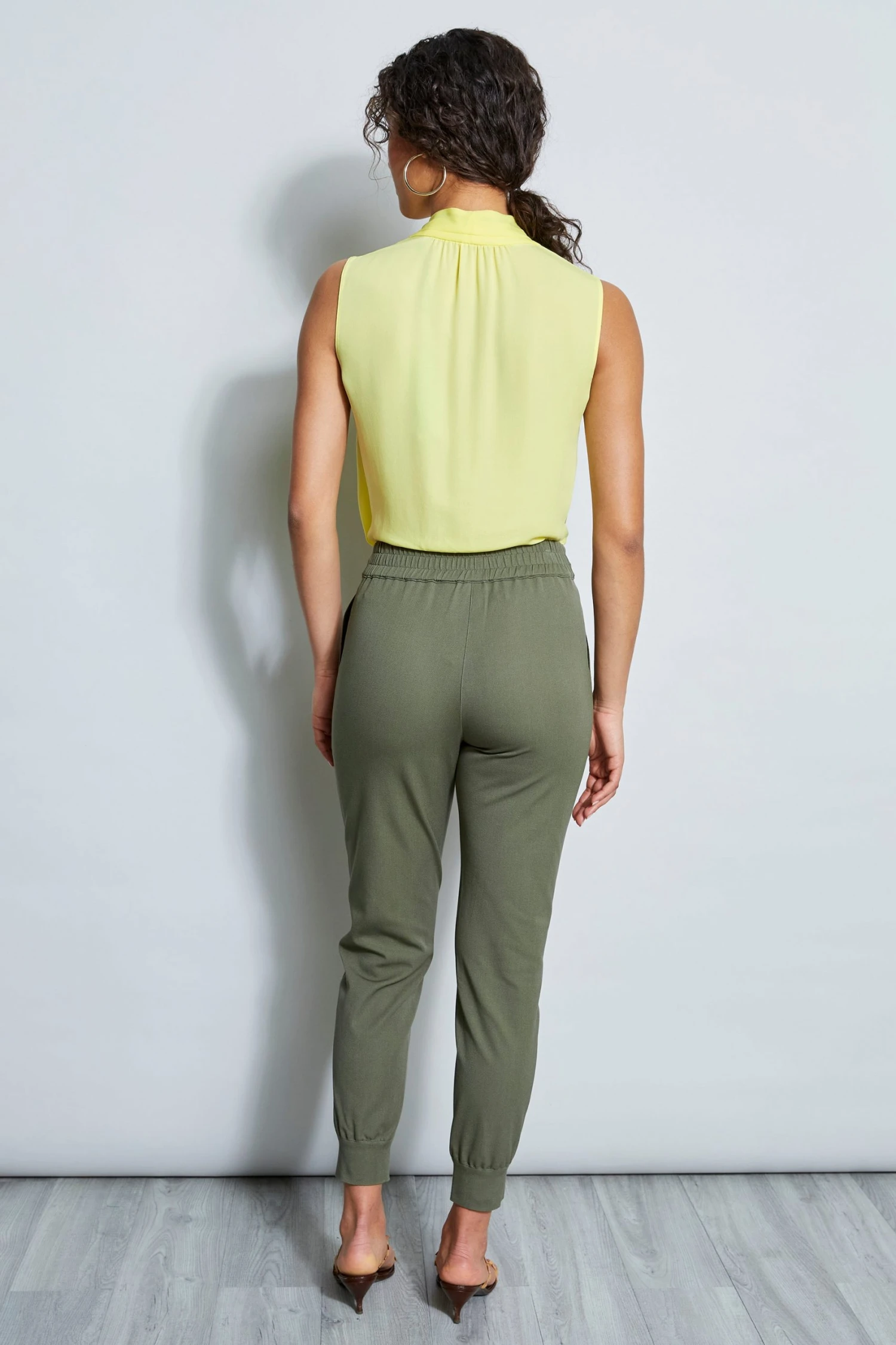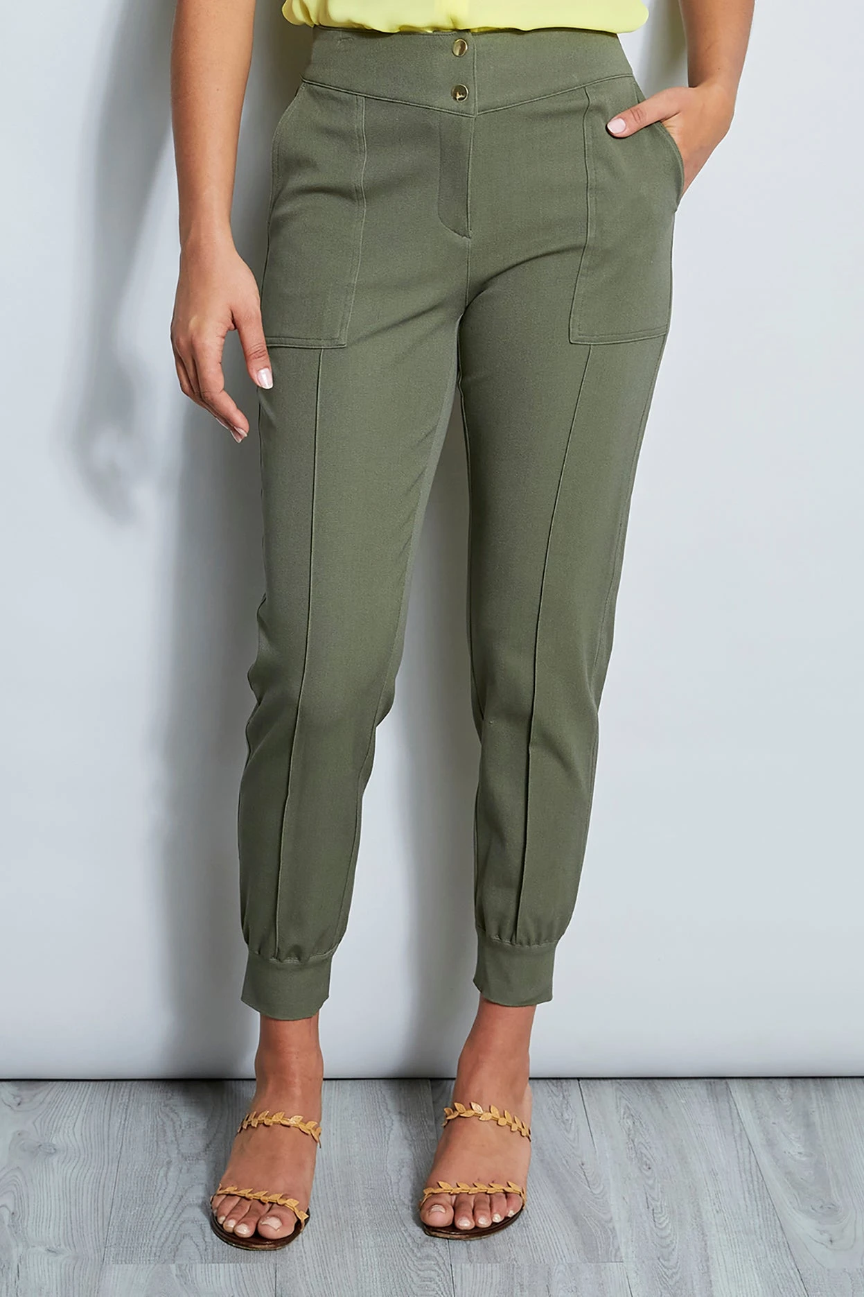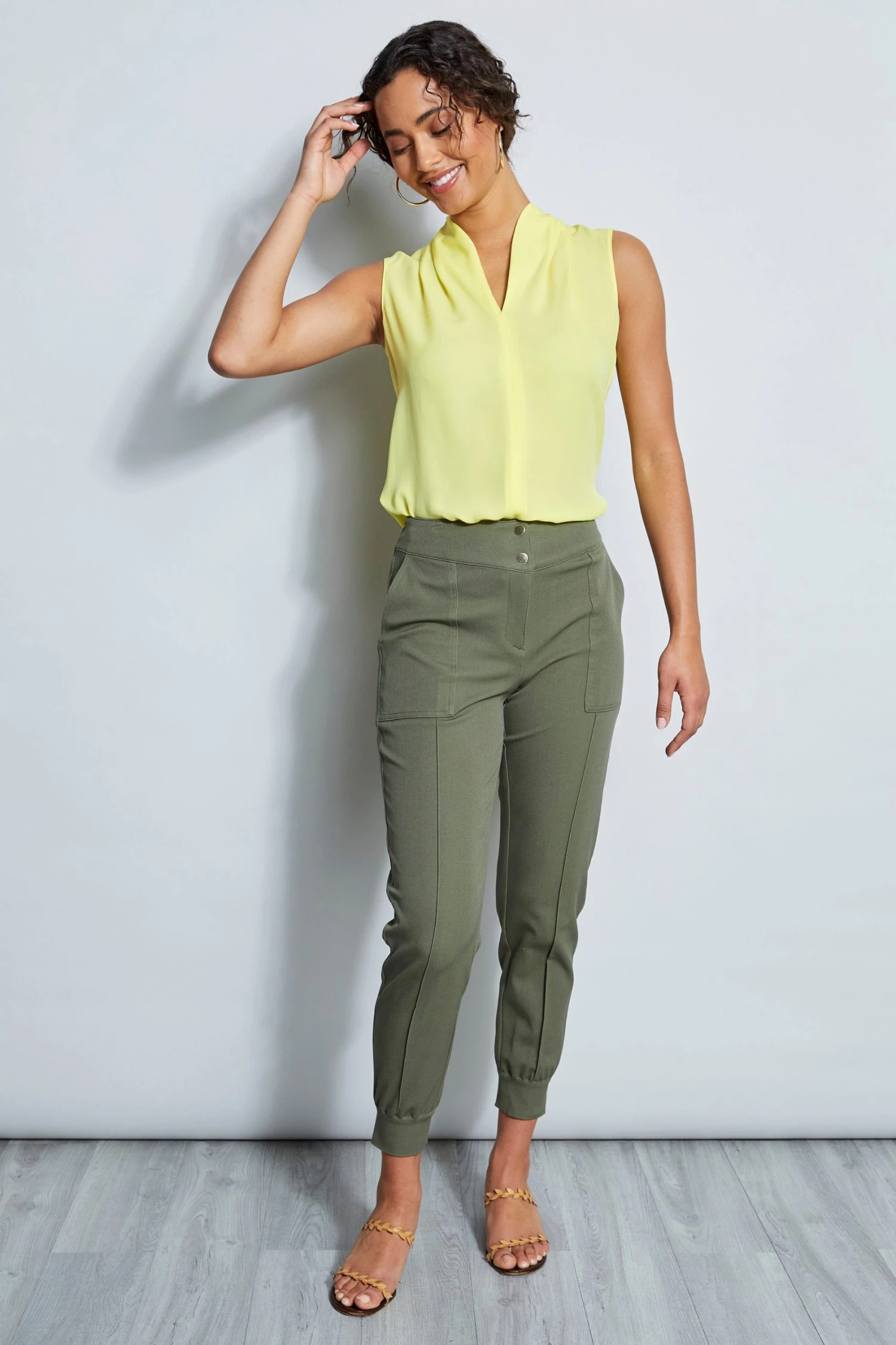 Our Stretch-Cotton blend pant is Elie’s take on Spring’s must have utilitarian trend. Sporty & comfortable, it’s detailed with cargo pockets, an elastic back waist and cuffed slim leg. Take on workdays or weekends in style!