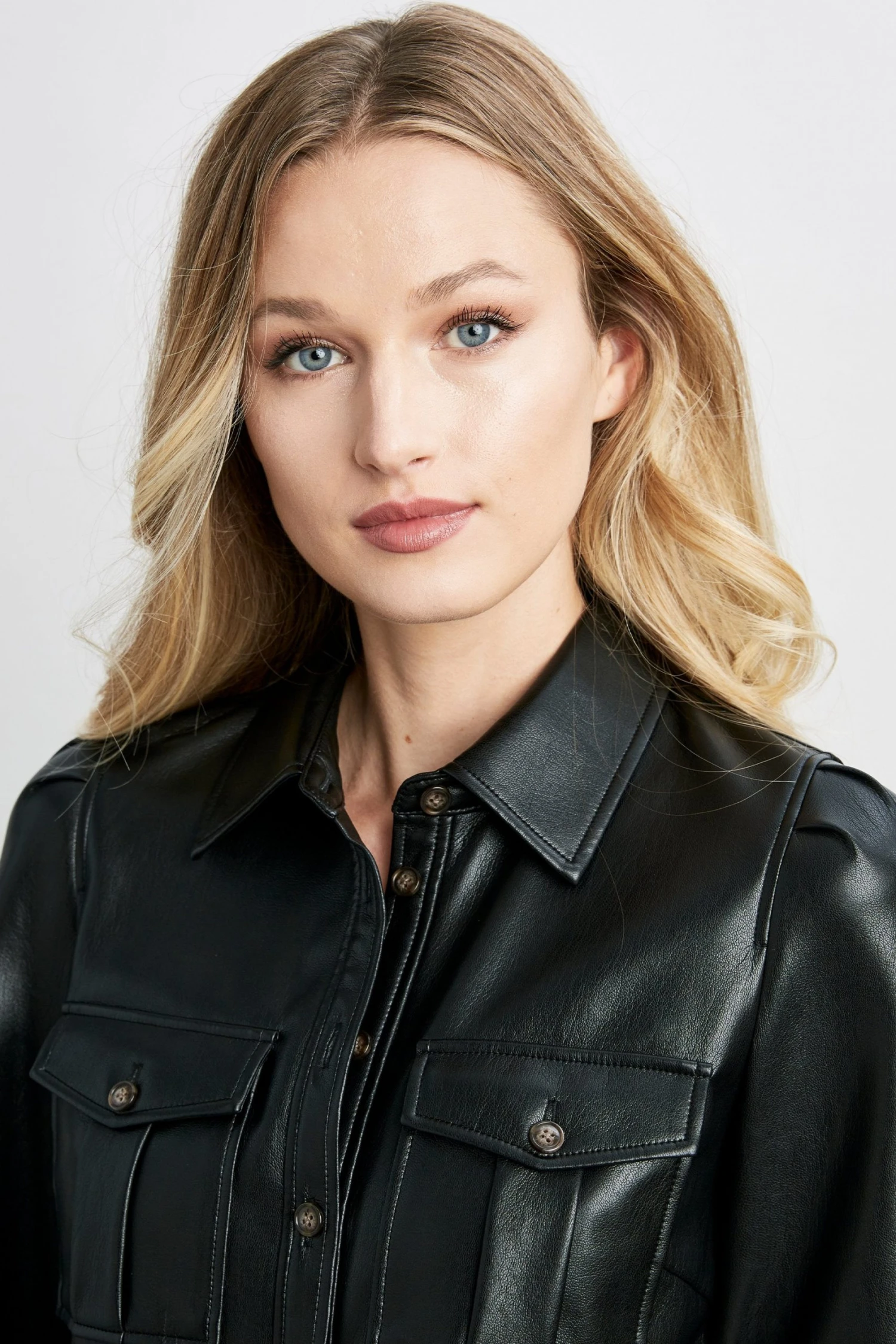 Is it a Shirt Is it a Jacket It’s our favorite layering piece for Fall. Our Vegan Leather Shacket feels like butter, but wears like leather. Versatile & edgy, this Shacket will instantly update your Fall Wardrobe.