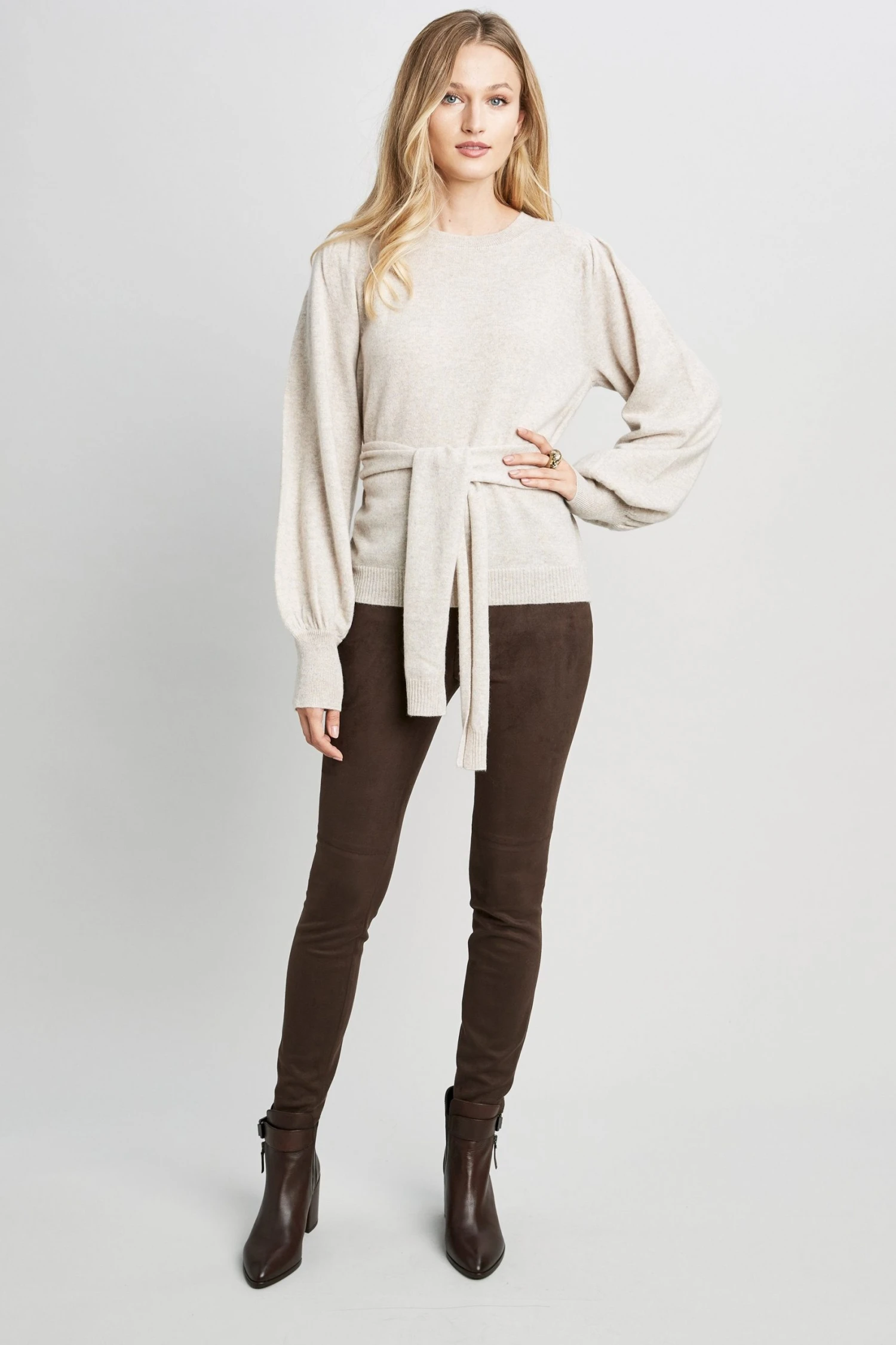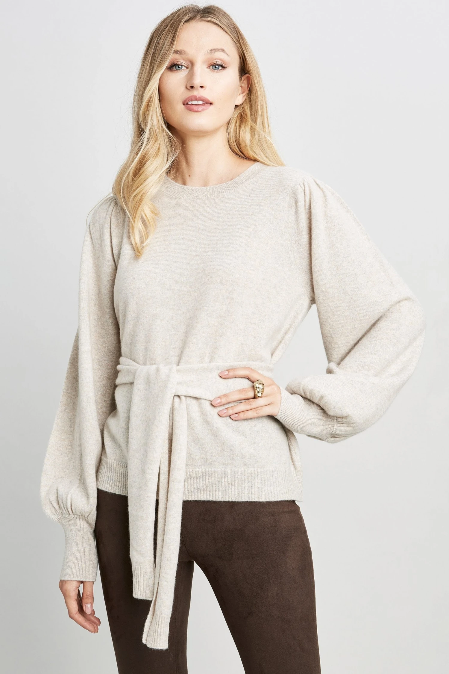 This is the sweater you’ve been waiting for. Featuring Blouson Sleeves & a Self Tie at the waist, you will live in our Luxe Cashmere sweater all Fall long.