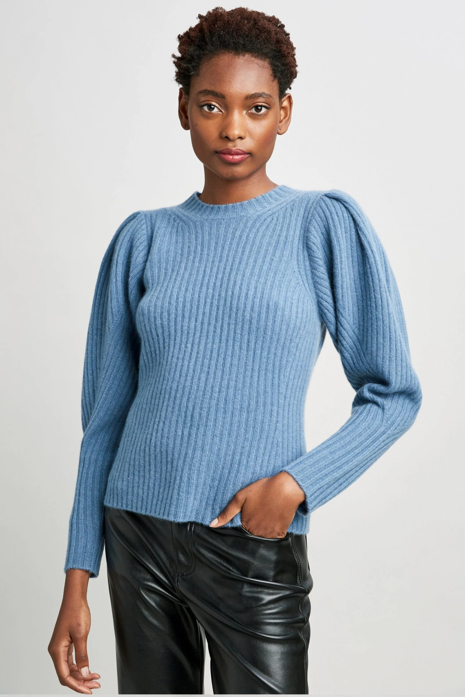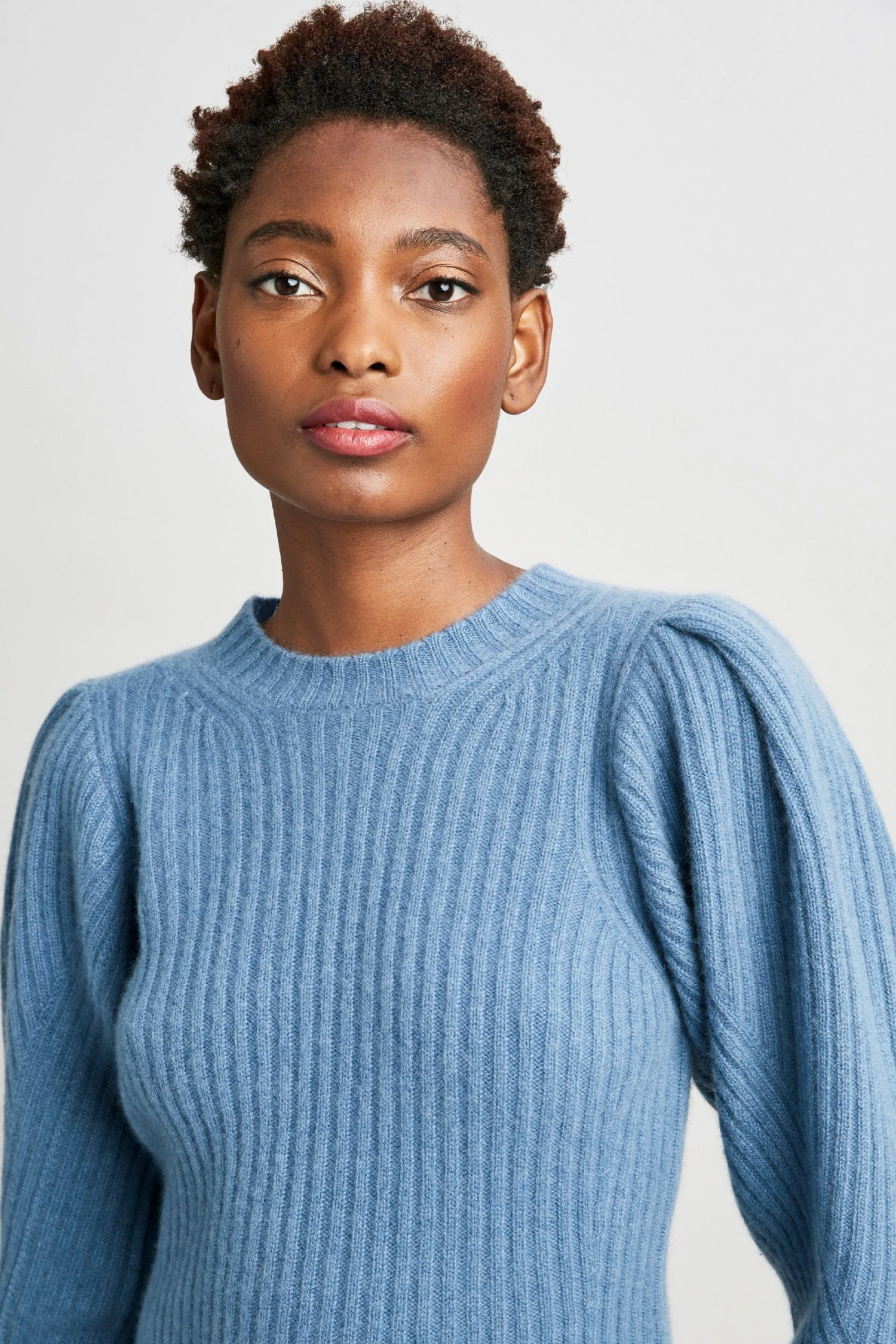 Designed in Luxe Cashmere, the romantic blouson sleeve detail and modern rib stich give our Cashmere Crew Neck Sweater a feminine yet sporty twist.